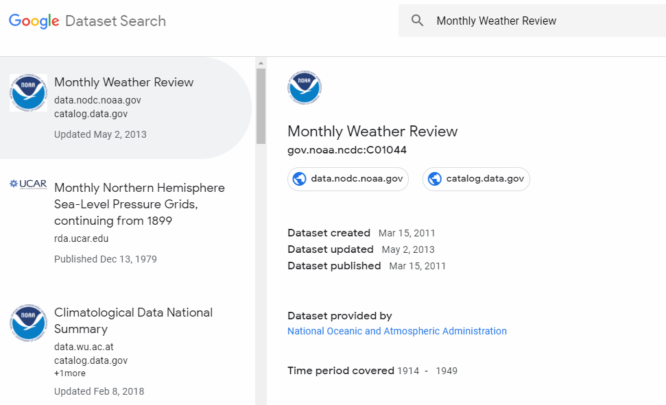 The second thing I want to mention is Google Data Search. It’s a search engine launched in September 2018 and it’s targeted at journalists and scientists. It looks like it’s taking advantage of something similar to structured data in order to figure out bullet points, such as release date, author and description.