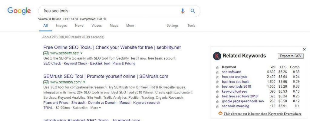 I’m not sure how this happened, but in the screenshot above you can see an ad saying “This chrome ext is better than Keywords Everywhere”.